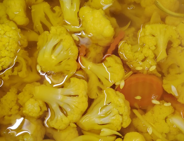 Mezcla picante casera de vegetales en vinagre con el balance justo entre acidez y frescura.
